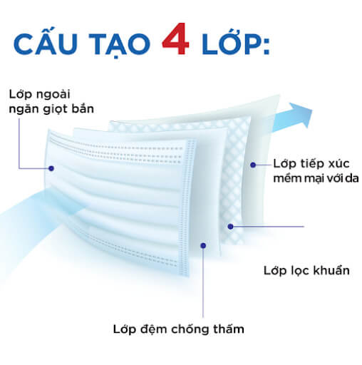1. Bảo vệ toàn diện: 4 lớp vật liệu gồm lớp ngoài chống nước, lớp lọc kháng khuẩn, lớp lọc bụi mịn và lớp trong mềm mại, giúp ngăn chặn hiệu quả bụi, vi khuẩn, virus và các hạt ô nhiễm.