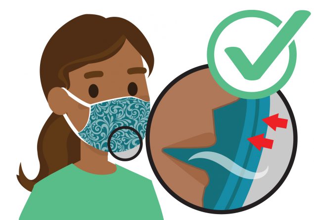 2. Đeo khẩu trang sao cho lớp lọc hướng ra ngoài, phần kim loại ôm sát sống mũi.